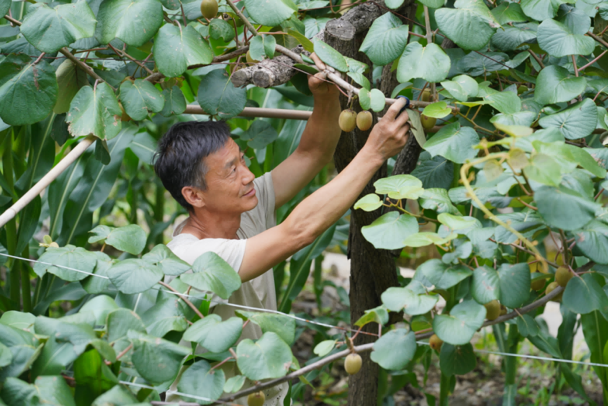从宋坪乡政府沿着山路前行,能够正常的看到一排排整齐的猕猴桃架,绿意盎然藤蔓下,累累果实挂满枝头,村民们穿梭其间,忙碌地进行着日常的管理与维护工作。